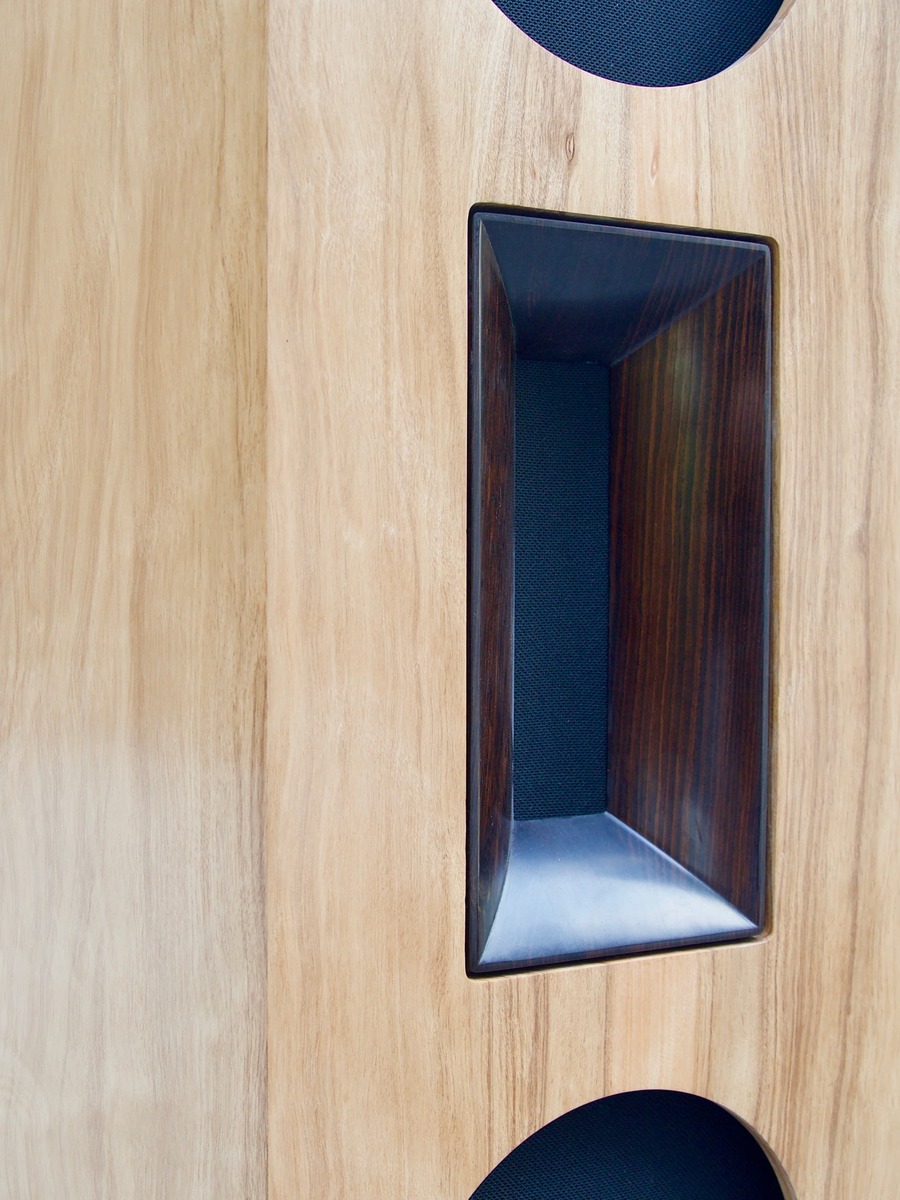 Wasserklare Höhen. Unsere Vorgaben im Hochtonbereich sind eindeutig und anspruchsvoll. Der Hochtöner soll eine hohe Empfindlichkeit haben, Schalldrücke über 120 dB aushalten ohne zu verzerren und 500-1000W ohne Lastwiderstand handhaben. Nur wenige Hochton-Chassis kamen überhaupt in Frage. Ein Druckkammer-Hybridtreiber und ein großer AMT, aufgeladen mit einem Taktrixhorn, schaffen diese Eckwerte. Ergänzt wird der Hochton durch einen rückwärtig einstellbaren AirMotion-Transformer. Das Ergebnis besticht durch unendliche Auflösung und Kraftreserven. Die Präzision in der zeitlichen und räumlichen Auflösung erlaubt es den Ohren die Klangräume in feinster Granularität zu erkunden. Die Obertöne der einzelnen Instrumente sind zeitlich und räumlich so klar aufgelöst, dass Verwechslungen der Holzblasinstrumente der Vergangenheit angehören. Die Konturen der Musik wirken echt und nicht nachgeschärft.